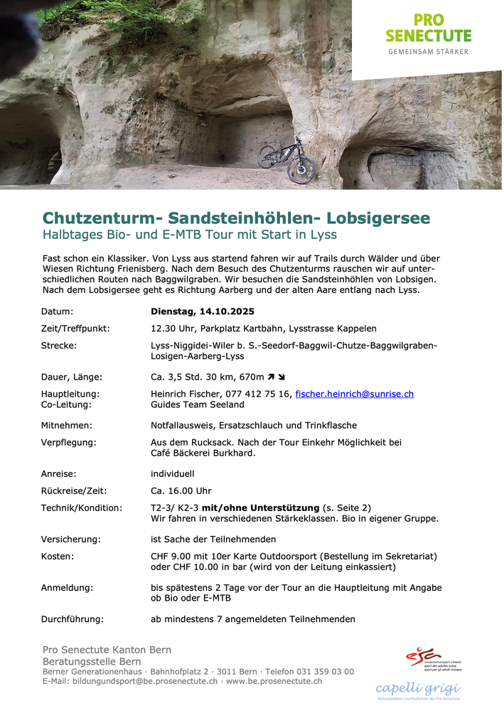 Wir starten zu einer spannenden Bio-/E-MTB-Halbtagestour um 12:30 Uhr in Lyss.