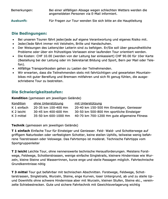 Die Ausschreibungen der einzelnen Touren werden jeweils 1-2 Wochen vor der Tour publiziert.