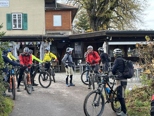 Die E-MTB/MTB-Halbtagestour "über d'Giebelegg" bot von allem etwas. Ein extrem langer und ruppiger Aufstieg vom ganz unten im Gürbetal liegenden Bahnhof Thurnen bis hoch in den Giebeleggwald. Dann eine biketechnisch variantenreiche lange Talfahrt mit einigen kniffligen Kurven und Wellen und letztlich eine rauschende Abfahrt via Riggisberg zurück zum Ausgangspunkt. Dabei waren 17 Biker*innen (inkl. Leiter), darunter 2 bio-Biker, die kräftig in die Pedale treten mussten.