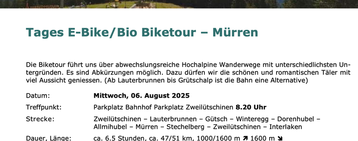 Die Alpintour führte über den Trütlisberg (1986 müM) und Parwenge, dies bei hervorragendem Wetter und mit 20 Teilnehmenden (davon 3 mit "bio"-Bikes).